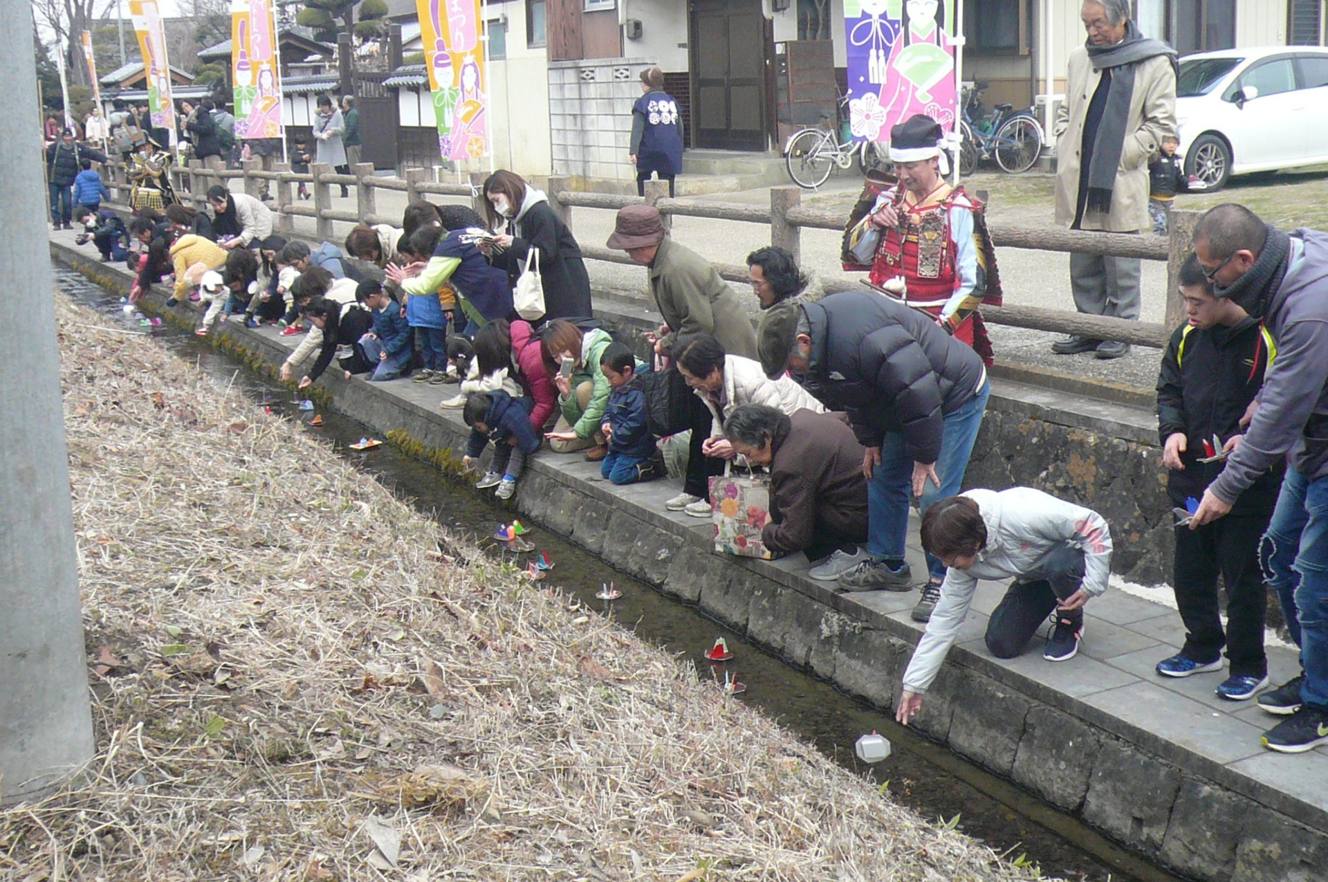 3月3日(日)、今年で17回目の開催となる「まつしろでひなまつり」のオープニングイベントとして、「流し雛」の催しが、松代の象山神社で行われました。この催しは、毎年この時期に開催され、豊栄地域活性化委員会からもボランティアとして参加をしました。